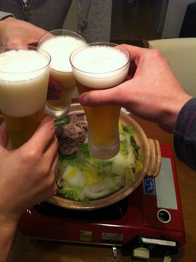 実家にて家族と乾杯。