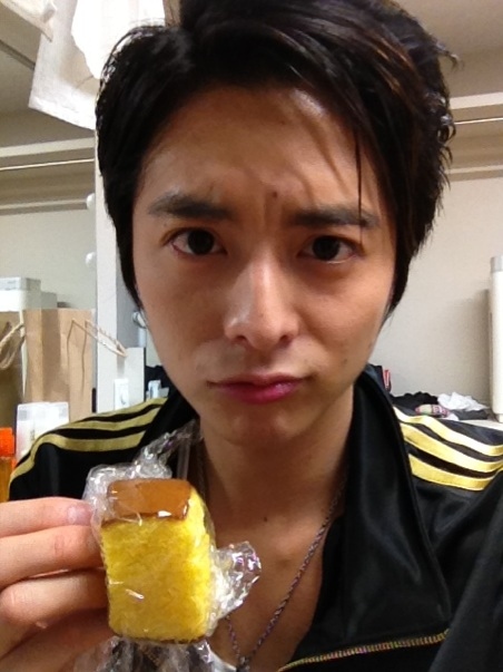 差し入れも沢山頂いて、写真は大好きなカステラをいつ食べるか悩んでる小池さんです。